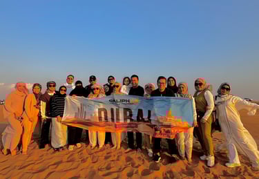From there, we explored the iconic Burj Khalifa, enjoyed the stunning Dubai Fountain Show, and took in the beauty of Dubai Marina. The team also experienced a thrilling Desert Safari adventure — complete with dune bashing, camel rides, and a traditional Arabian dinner under the stars.