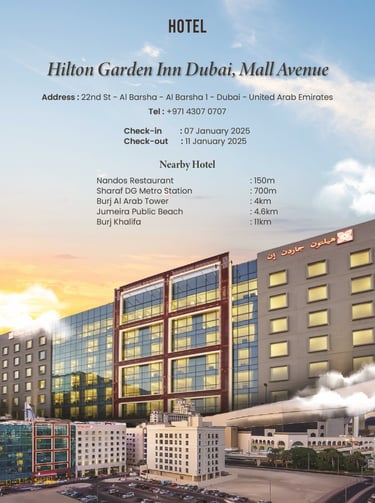 Our exciting journey began as we checked in at Hilton Garden Inn Dubai, where comfort and hospitality set the tone for the days ahead.